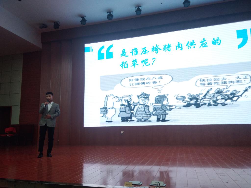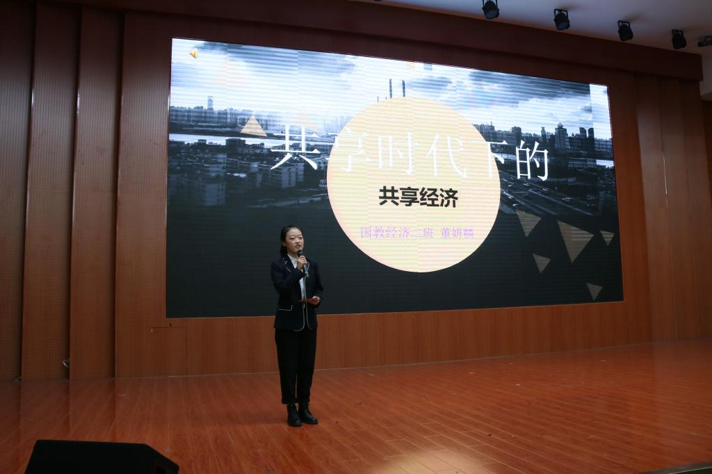 大赛在公司文艺部成员的一支热舞中拉开序幕。首先出场的演说家是来自商公司的李夏兵同学,她演讲的主题是“双十一背后的故事”,从她生动的举例以及花样繁多的ppt中我们了解到双十一的由来,双十一背后又是如何营销的,所谓的跳楼大甩卖不过是先涨价后降价的老把戏,以及面对这样的营销我们应该如何理性应对。在经过了一轮评委打分后,商公司经济学班的关润玉为我们带来了一首《世间美好与你环环相扣》,在这寒夜里温暖人心。接着是来自商公司的丁家颖同学做演讲,她的主题是“探索十元店的奥秘”她举止大方,谈吐优雅。以名创优品为例,从她口中我们了解到名创优品与其他两元店的相同点与创新点,名创优品成功背后的经济学原因以及营销学原理。经过了又一轮的评委打分,晨曦话剧社为我们带来了精彩的小品表演《天使面馆》,不仅使得在场的观众捧腹大笑还引得大家深思独立人格的魅力。最后是来自15vip太阳集团的董妍麟同学,她以从容的气质,简洁明了的表达方式向我们讲述了“共享时代”的内涵,不仅在于共享经济在社会发展方面的意义,还剖析了共享经济在人文感情中的地位。经过一个多小时紧张而激烈的角逐,公司董妍麟凭借熟练的演讲技巧与深刻的演讲内容,夺得本次《超级经济演说家决赛》的冠军,同样来自公司的四号选手邓浩同学在激烈的角逐后荣获三等奖。