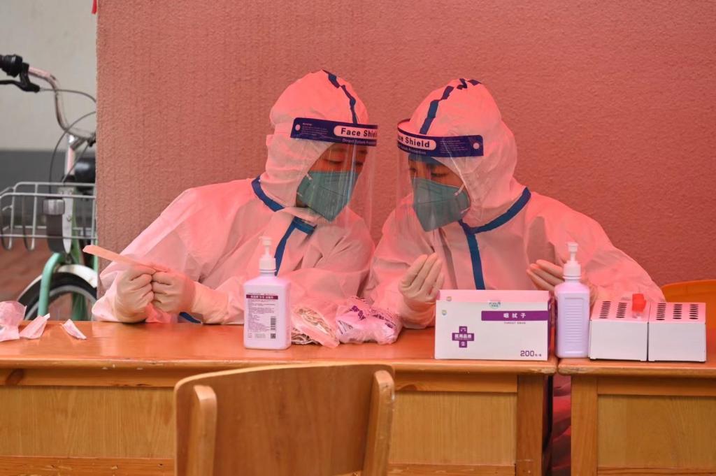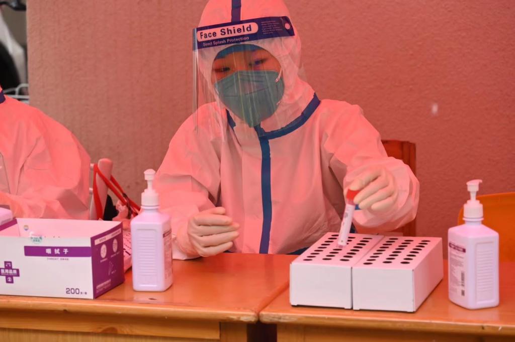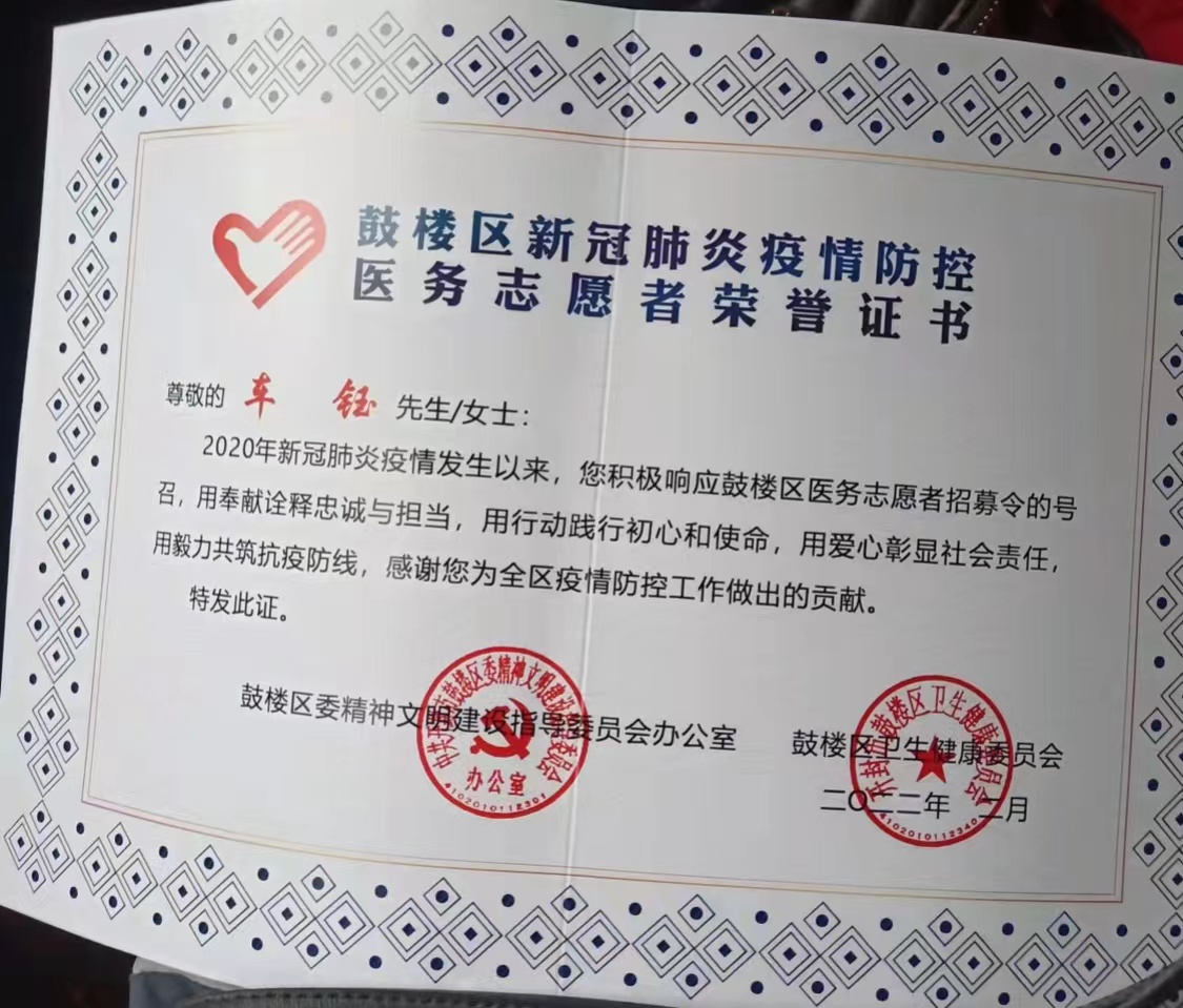 “疫情就是命令,防控就是责任,作为刚返乡的老员工,有义不容辞的责任,在关键时刻要站得出来、顶得上去、冲锋在前。”车钰同学通过身为医生的母亲与鼓楼区卫生部门对接联系并前往社区报道。经过简短的专业培训,她跟随母亲以及其他几位志愿者迅速投入紧张的核酸样本采集工作中,小区设置核酸检测站点,对于不方便出行的老人,他们还会进行上门采集,每天七点准时到岗,在检测位点一坐就是一上午,她协助医护人员进行核酸样本的采集、清点核对样本数量,在这次志愿活动中,她学到了许多医疗知识。