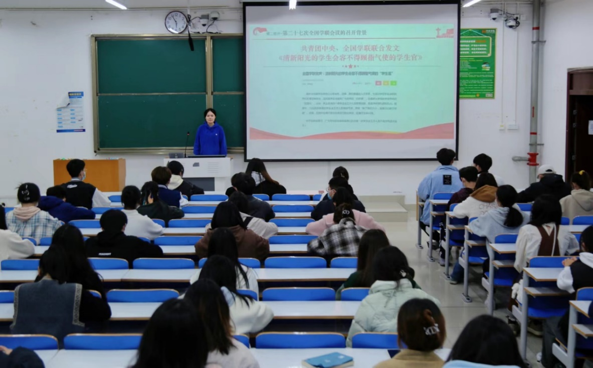 为深入学习习近平总书记关于青年工作的重要思想,全面贯彻落实全国学联二十七大会议精神。11月10日,15vip太阳集团在社科楼326举行2022-2023年度第二次员工全会并组织学习全国学联二十七大会议。公司分团委书记许孟杨,员工会全体成员参加本次会议。